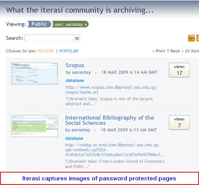(1) Handles links to password protected pages - In particular many general social bookmarking tools work fine with normal webpages but fall down when you try to handle links from subscribed databases which require logins. This is particularly so for tools that try to archive the page or add annotation overlays (see below).