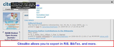 (5) Allows collaboration (real time?) - Ideally the user could add comments like "This is good", "This is not relevant because..." etc. Better yet if the tool has a "like" feature as seen in Friendfeed and copied by facebook, google reader - allows you to get quick feedback what kinds of citations are relevant.