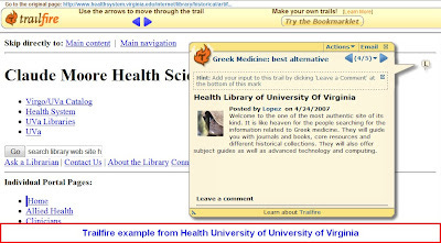 A few libraries have started to use TrailFire to guide users. Below is an example from Central Pennsylvania College library which they use to annotate pages to guide users through their webpages.