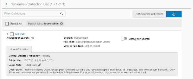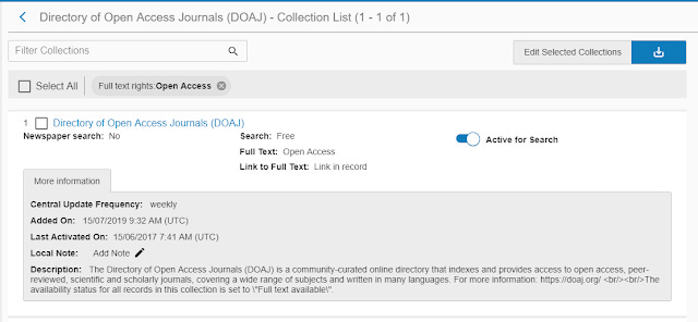On the other hand, if you find your database, discovery service is adding or has the option to activate OA as collections, consider the following