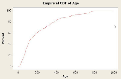 Above shows the cumulative distribution graph of Library Twitter accounts by age (days).