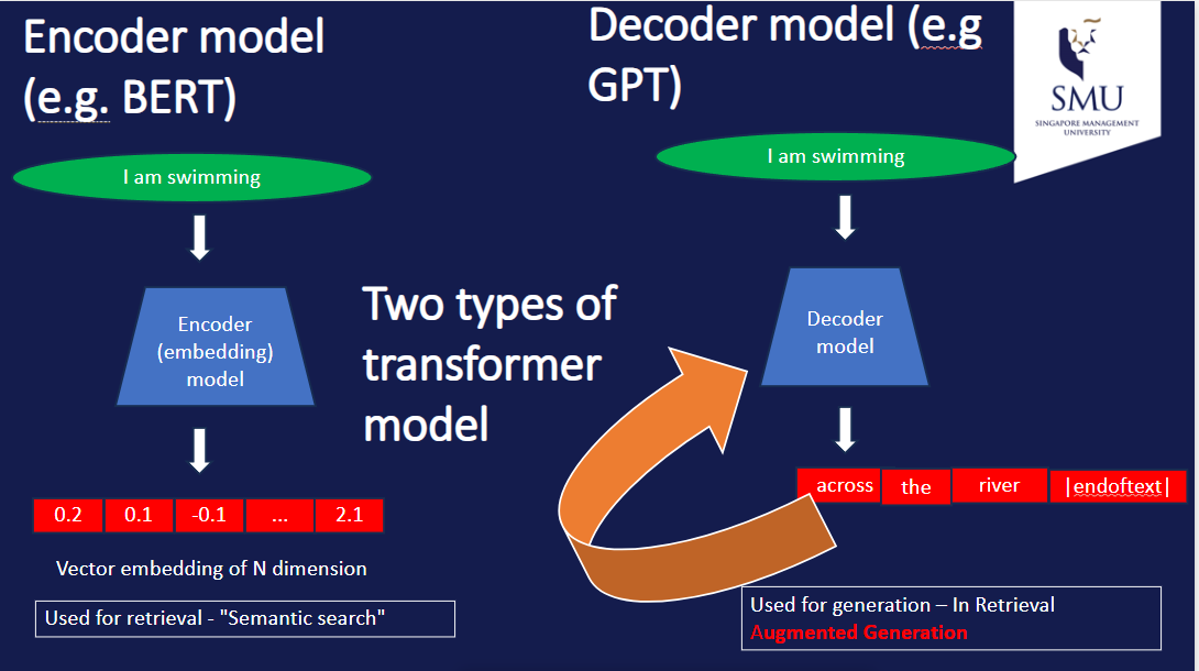 Embedding models predated Transformer neural net architecture that ChatGPT and its rivals are based on. But since 2020s, we have found the most effective embedding models are based on Transformer based encoder models. So let's discuss this next.