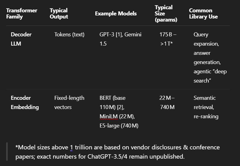 But it is important to realize that what is typically called "Semantic search" runs on a slightly different technology known as encoder embedding models and largely though not completely sidesteps all the arguments above.