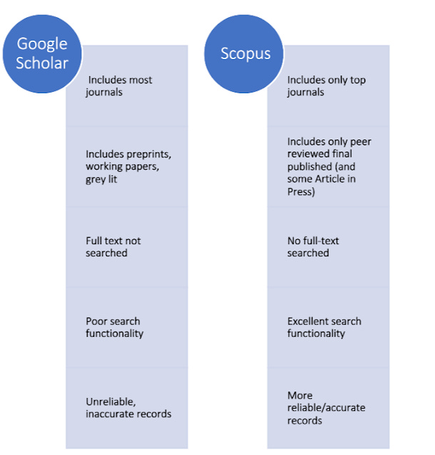 With all these considerations, it is fair to say that Google Scholar and Scopus are almost polar opposites in many ways